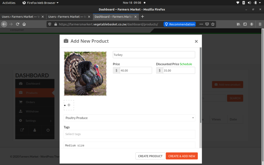 – Every product should have a category, on this platform we only allow vendors to sell farm produce.