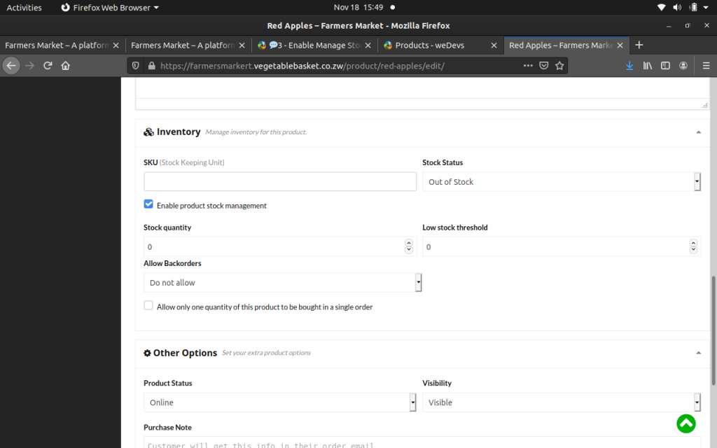 –This option enables you to manage your stock. For example if you are selling 50 cows on Stock Quantity you will write 50, this will help clients to know if your product is in stock or not.